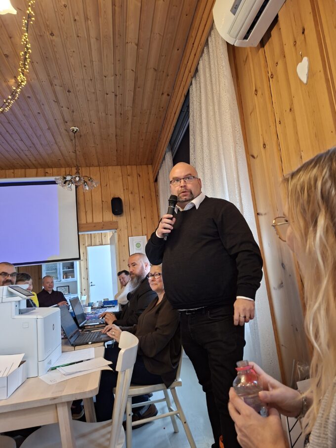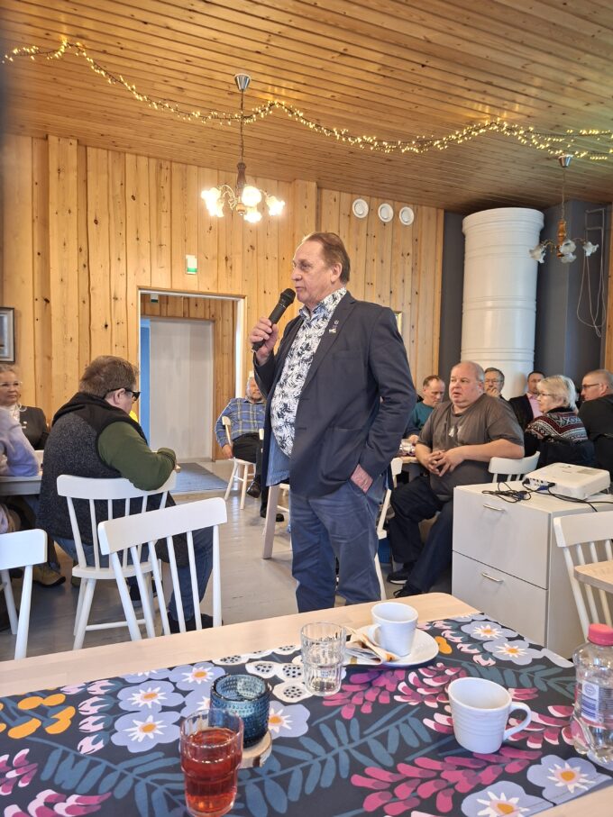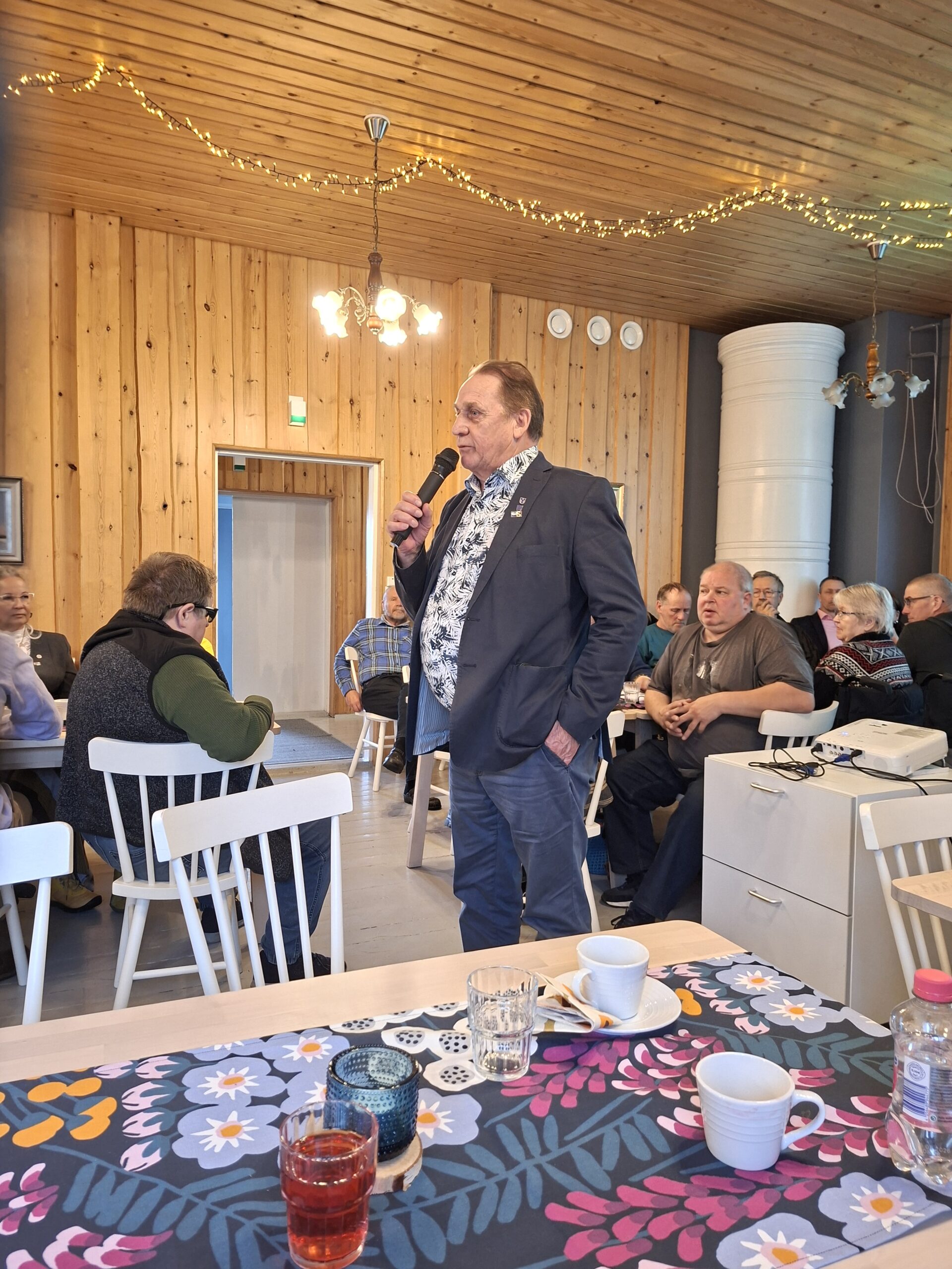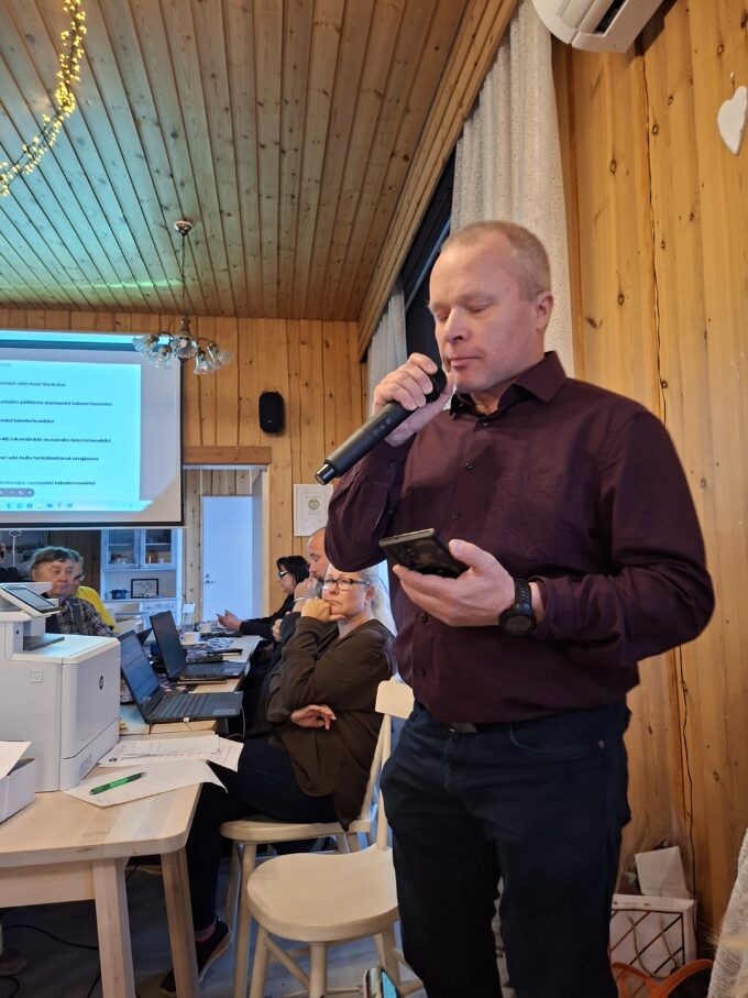 Kärsämäen kunnanjohtaja Juho Jukkola toi Kärsämäen tervehdyksen piirin syyskokoukseen 30.11.2024