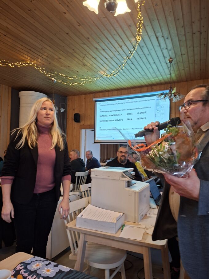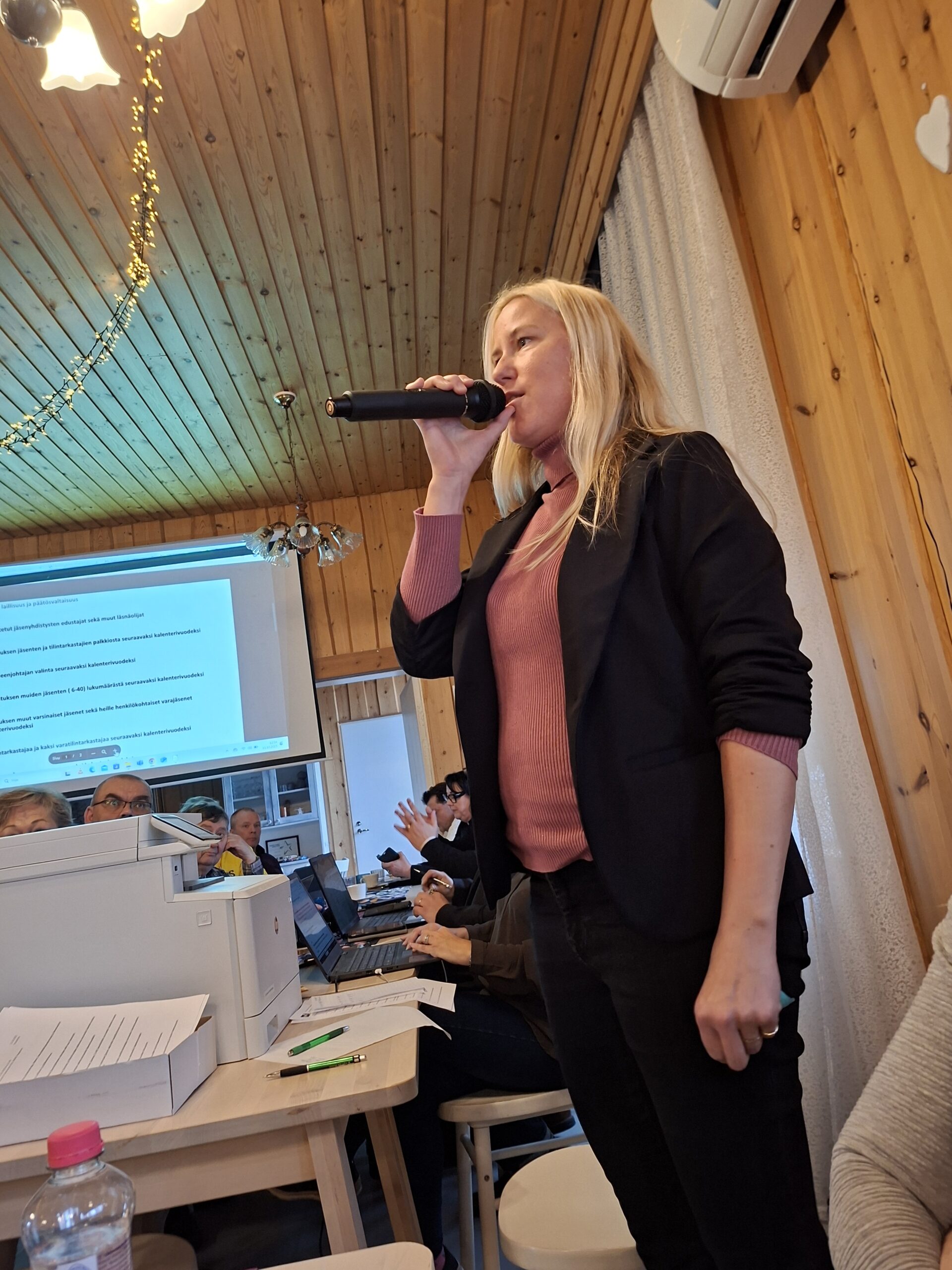 Kansanedustaja Jenna Simula toi eduskunnan terveiset piirin syyskokoukseen Kärsämäellä 30.11.2024