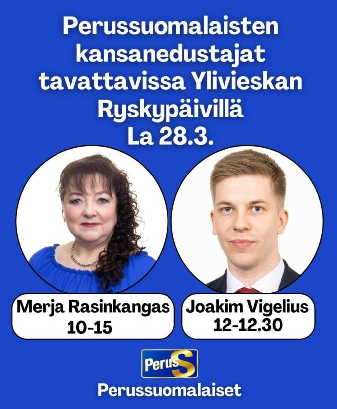 ”Tätä on odotettu ja kyselty! Nyt saamme julkistaa kaksi istuvaa kansanedustajaa ehdolle vuoden 2027 eduskuntavaaleihin. Lisäksi saamme Kempeleestä yhden ehdokkaan. Tavataan teltoilla ja tapahtumissa.”